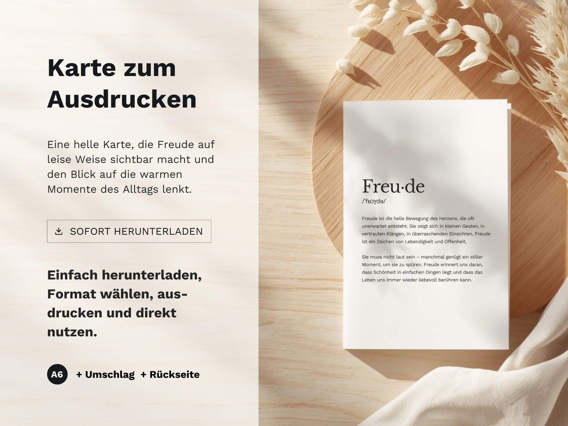 Karte „Freude“ zum Ausdrucken | Postkarte & Faltkarte